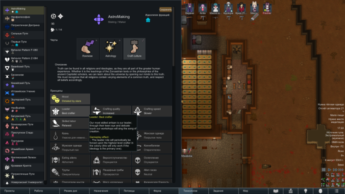 не советую этот мод, не одного ритуала успешно вы не сделаете… все будут проваливаться, так еще и колонисты будут бегать дпока вы не пойдете не провалите очередной ритуа м -30 к настроению..., нафиг этот сюр а не мод