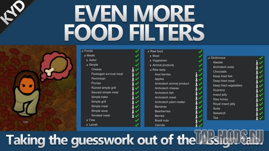 Мод "[KYD] Even More Food Filters" добавит в игру еще больше фильтров для еды.