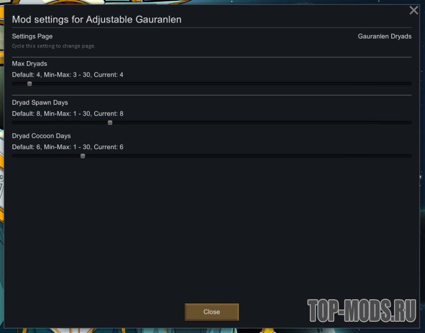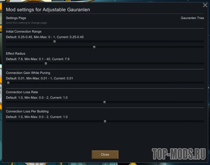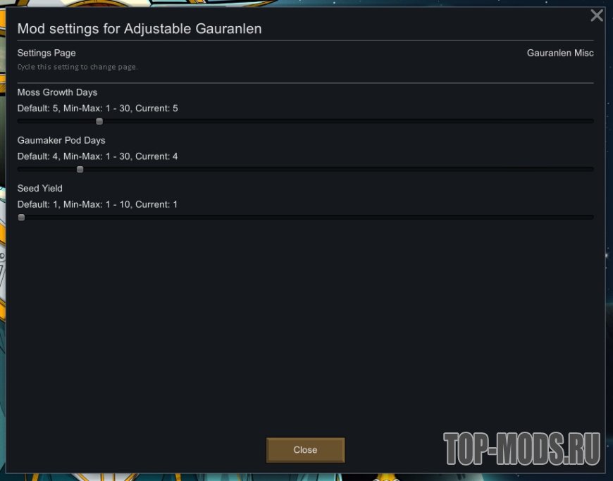 Небольшой мод с настройками для управления деревом Гауранлен. Набор опций, которые охватывают большинство таймеров и значений, которые люди обычно могут захотеть изменить.
