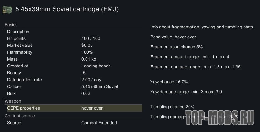 Все эти эффекты имеют возможность срабатывать в зависимости от их характеристик типа и калибра боеприпасов. Лучший способ проверить, какой урон они нанесут или как часто они будут происходить, - это зайти на вкладку "Информация об боеприпасах", затем щелкнуть или навести курсор на статистику свойств CEPE.