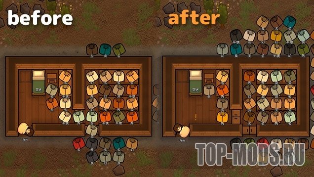 Мод DontBlockDoorMod для Rimworld — запрещает колонистам оставлять любые вещи в дверях, из-за чего они не закрывались.