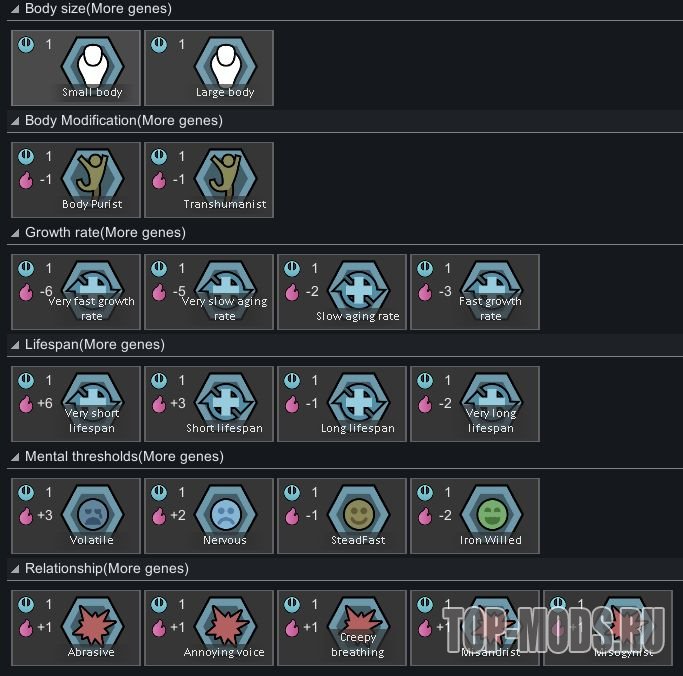 Простой мод, который добавляет больше генов о ванильных чертах, здоровье и иммунитете.