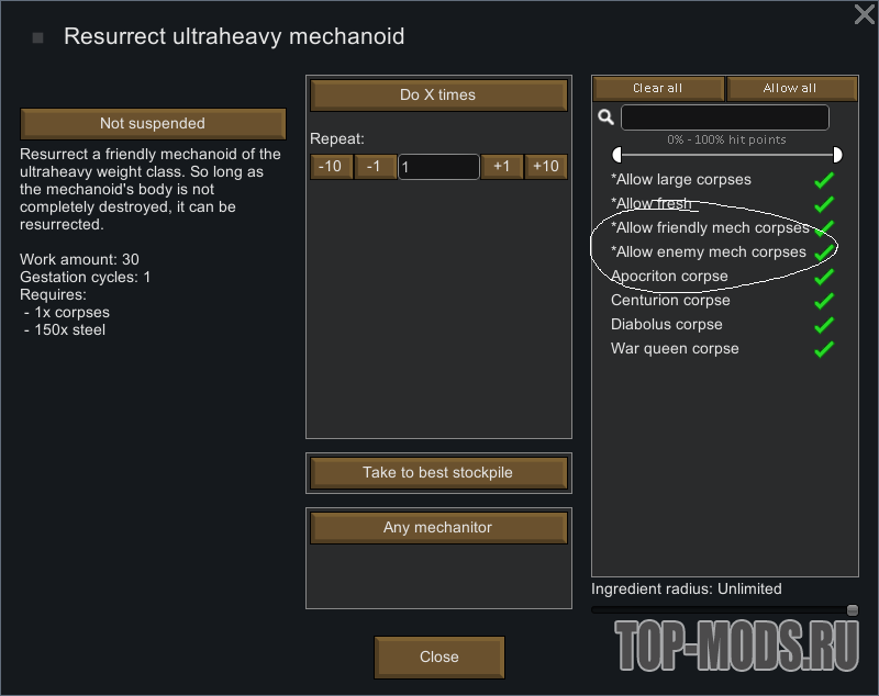 Воскрешайте вражеских механоидов точно так же, как вы воскрешаете механоидов своей колонии.