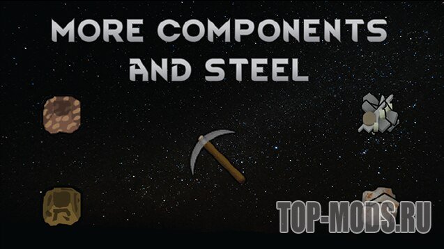 Устали постоянно искать сталь и компоненты? Не хотите задумываться над их количеством? Тогда этот мод для вас! он увеличивает количество добываемой стали и компонентов.