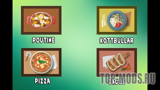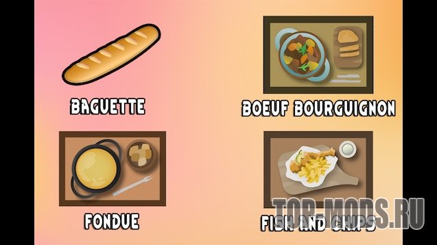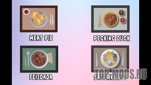 Этот мод является самостоятельной частью моего большого проекта "Geopolitical Rimworld". Если я не создал страну, из которой происходит блюдо, то его здесь не будет.