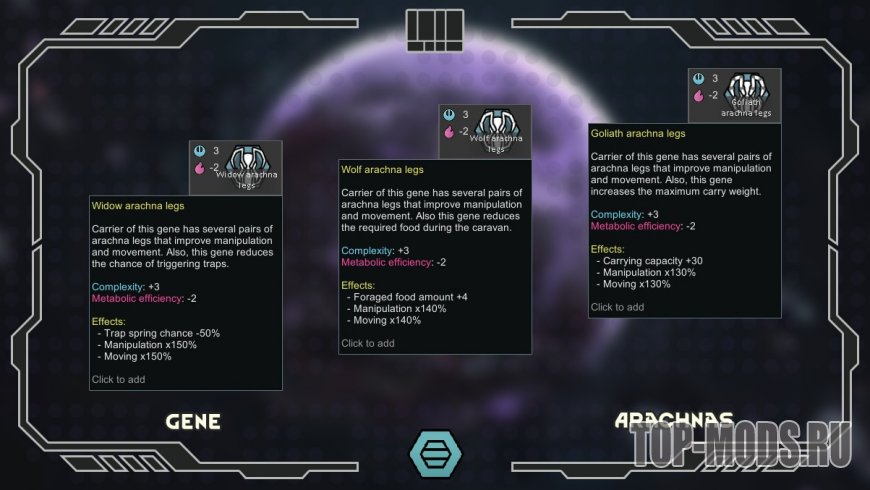 Основное нововведение мода это Арахна ксенотипы, с планеты Обсидия.