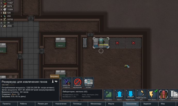 При настройках по умолчанию он будет извлекать по одному гену каждые 8 дней, не применяя повторное выращивание генов. Вы можете просто оставить персонажа там, и до тех пор, пока не отключится электричество и у него будет еда, генные пакеты будут продолжать производиться.