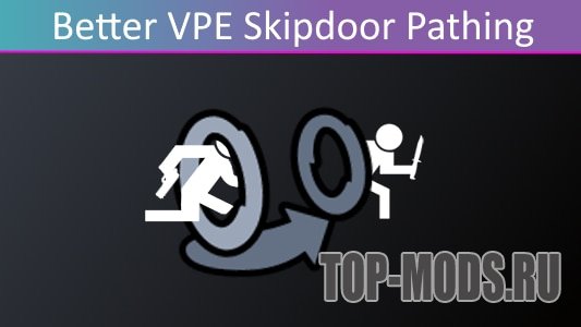 VPE Skipdoor Pathing добавляет задания в очередь пешек для использования проходных дворов, что дает преимущество в виде проигрывания анимации активации проходных дворов, но имеет проблемы, когда пешки пытаются выполнить многоэтапные задания, такие как заправка или охота, что в некоторых ситуациях заставляет пешки бесконечно циклиться по проходным дворам. Этот мод немного подстраивает поиск пути так, чтобы все тайлы с проходными дверями считались смежными, поэтому не будет причудливой анимации (по крайней мере, пока), но и не будет проблем со сложными заданиями.