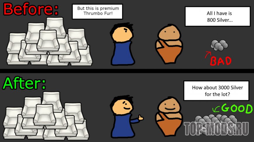 Помню, я видел мод «Traders Have Money». Так вот, там у торговцев было какое-то безумное количество серебра.