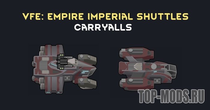 Добавляет в игру Имперские шаттлы из VFE - Empire, которые можно строить как транспортные средства. Вам понадобятся чертежи для них, их можно получить, торгуя с Империей. Стандартный шаттл является необходимым условием для создания бронированного.