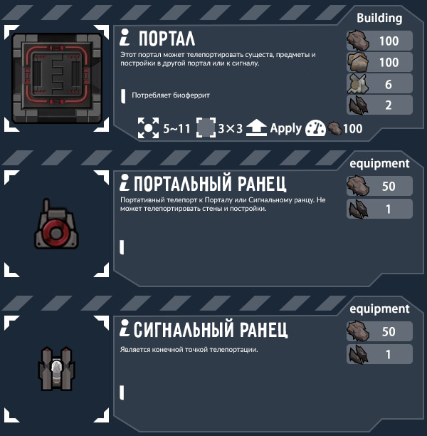 Порталы из осколков станут новым видом транспорта, который может телепортировать существ, предметы и даже стены зданий в любое удобное для вас место (при условии, что вы сможете установить маяк). Это означает, что вы можете быстро развернуть оборонительную позицию размером не более 11* 11 в любом нужном им месте или вернуть существ, участвующих в миссии, обратно в колонию, вместо того, чтобы позволить им исчезнуть с карты.