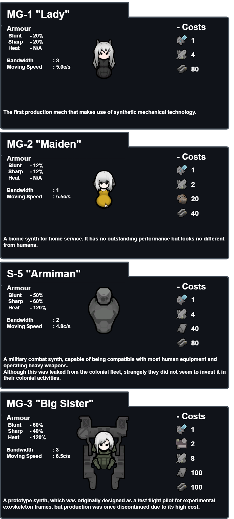 Синты - это синтетические роботы, которые используют искусственные мышцы и органы в процессе производства. За исключением стоимости производства, он превосходит автоматические роботы, находящиеся на вооружении колониального флота, во всех аспектах.