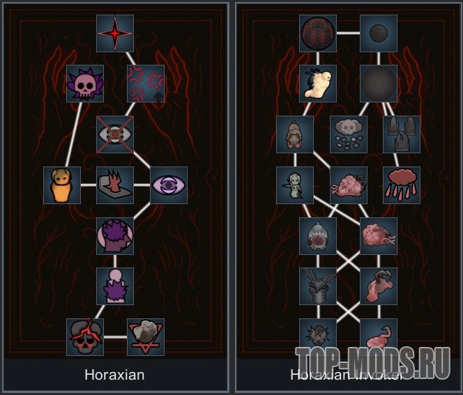 Эти деревья можно разблокировать, потратив очко на медитацию «Благосклонность Хоракса». Они находятся на вкладке «Разное» в разделе «Пси-касты».