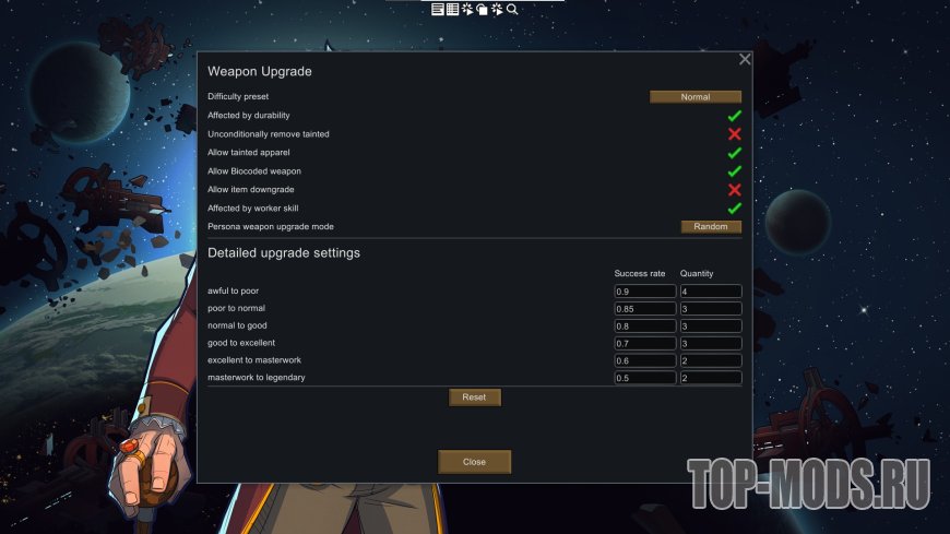Вероятность успеха и требования к предмету регулируются в настройках мода.