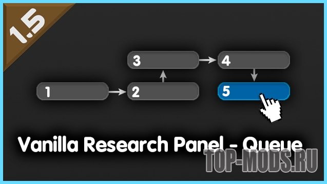 Добавляет очередь в окно исследований. Левый Shift + ЛКМ по нужным исследованиям, чтобы добавить/убрать исследования в очереди.