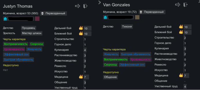 У них чисто навыки стрельбы и рукопашки развиты? все остальные недоступны или что?