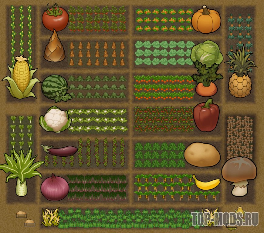 Этот мод добавляет ряд съедобных культур и соответствующие им гигантские культуры. Когда вы сажаете культуры на прямоугольном участке, есть шанс получить гигантские культуры, когда они созреют