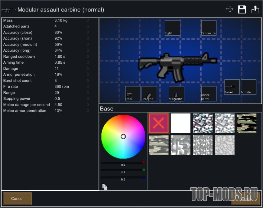 Основные части этого оружия нельзя заменить, но можно добавить прицелы, дульные насадки и т. д.