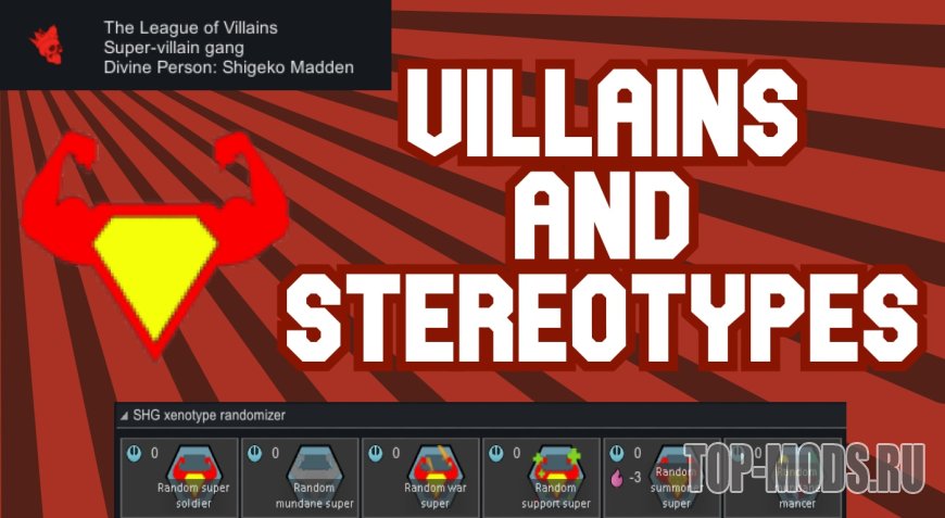 «Злодеи и стереотипы» дают вражескую фракцию, которая использует гены, предоставляемые «Генами супергероев», а также некоторые ксенотипы и рандомизаторы генов, которые упрощают быстрое создание супергероя. Также добавлен новый сценарий, в котором все, кроме фракции злодеев, настроены враждебно, и рассказчик, который значительно повышает сложность игры.