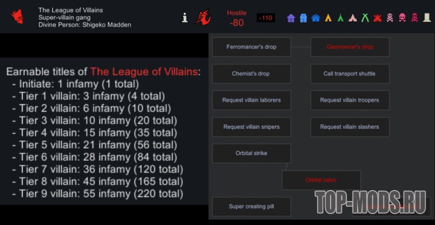 По умолчанию банда суперзлодеев настроена враждебно, но если вам удастся превратить их в союзников с помощью квестов, подарков и старого доброго убийства, вы сможете подняться по карьерной лестнице и получить доступ к новому финальному квесту, который заканчивается тем, что все в мире умирают за кадром, потому что увидеть что-то настолько интересное на экране было бы слишком захватывающе. Вы можете повышать свой ранг с помощью квестов, как и в случае с Империей. Каждый уровень после начального даёт очко, которое можно потратить на специальные разрешения для злодеев. Эти разрешения можно получить в обычном меню разрешений. Когда вы откроете меню разрешений, вам, вероятно, нужно будет переключиться на нужную фракцию с помощью стрелок в левом верхнем углу меню.