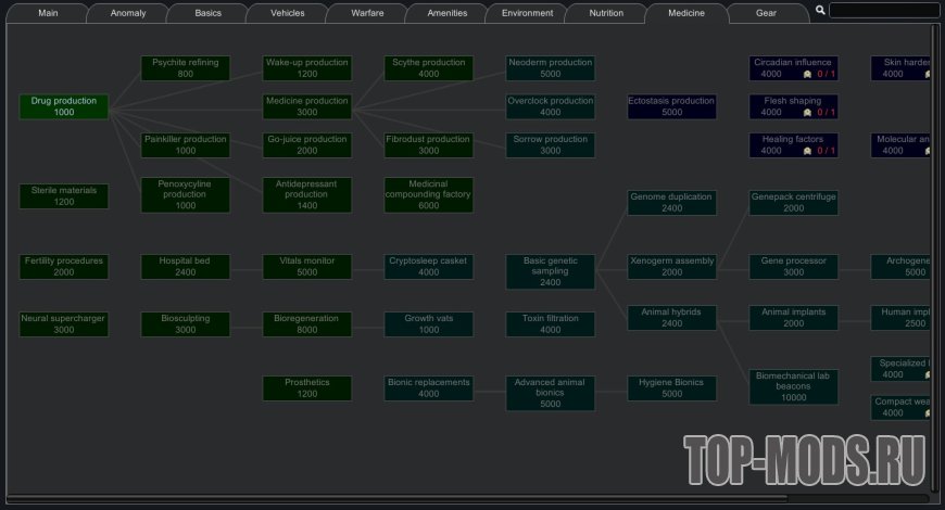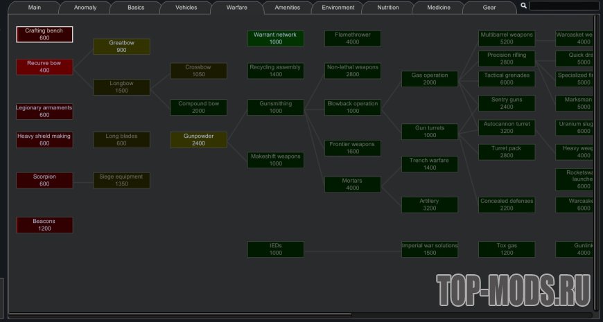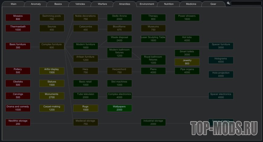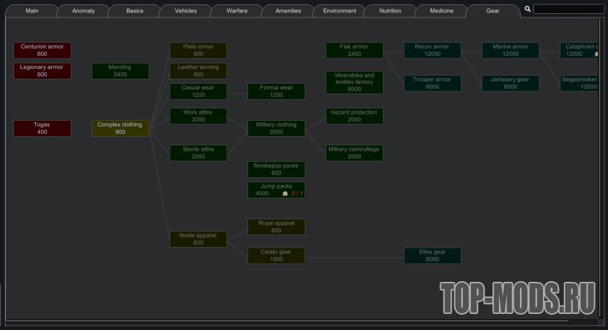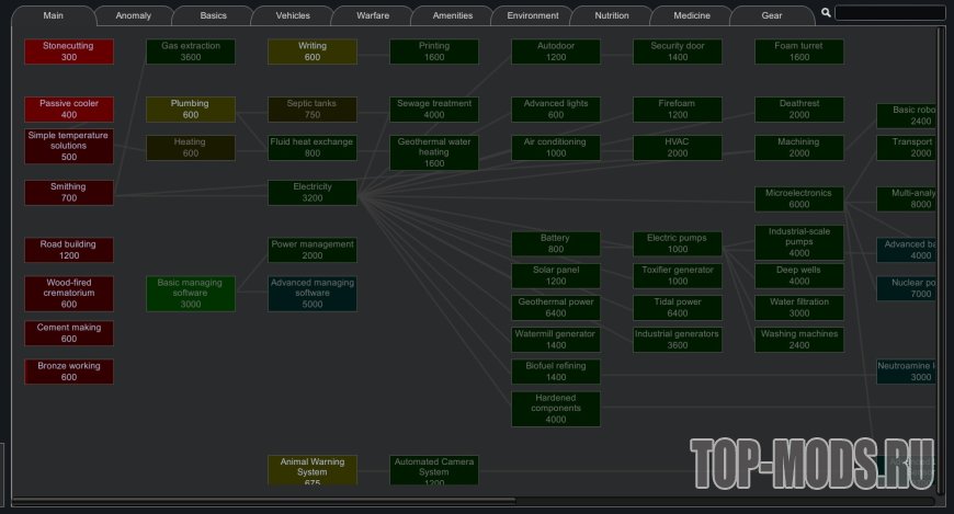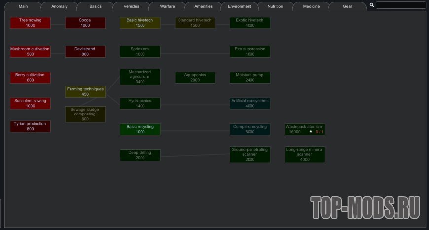 Этот мод реорганизует дерево технологий, чтобы упростить навигацию, группируя технологии по темам, а не по модам. Он включает поддержку многих модов, включая всю коллекцию Vanilla Expanded и моды Ferny's Progression. Все включенные моды являются необязательными, вы можете проверить поддерживаемые моды в закрепленной теме.