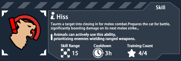 Превратите каждого кота в тактического гения! Теперь все кошки могут освоить навык «Шипение» через тренировки.