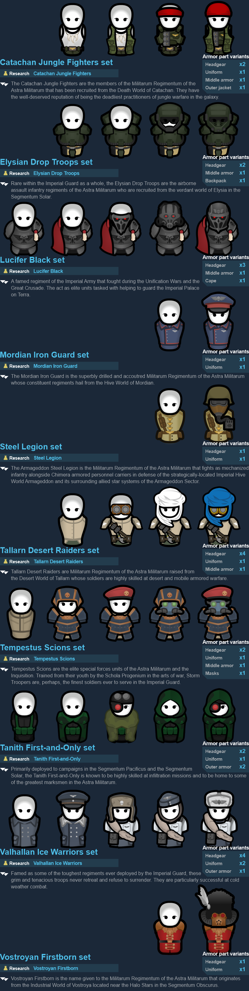 Это наш модуль "Полки славы" серии "GrimWorld 40 000", который является ключевым элементом подсерии "Прославленные полки". Этот мод функционирует как временная "свалка" всех полков, для которых у нас есть визуальные эффекты, но им не хватает более широкого набора предметов, чтобы стать полностью автономным модом. Со временем, когда полки будут расширены, они получат свой собственный мод и будут удалены отсюда. Этот мод, как и другие будущие релизы, является частью нашего особого сотрудничества и объединения усилий с Coventech, и он уже давно ждет своего выхода.