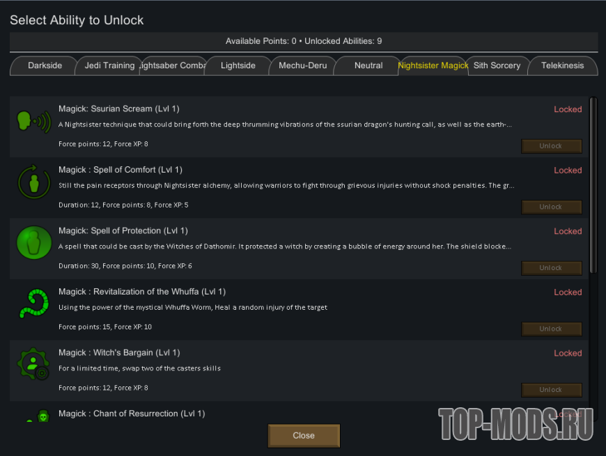 Разнообразные пути: Освойте множество дисциплин Силы, включая Светлую и Темную стороны, бой на световых мечах, магию Ночных сестер, колдовство ситхов, обучение джедаев и телекинез. Каждый путь предлагает уникальные способности и стили игры.