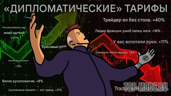 Мод внедряет невероятно интеллектуальный и продуманный алгоритм изменения торговых пошлин, основанный на абсолютно ничем...ой, т.е. сложнейшей динамике глобального рынка и тонких материях дипломатии.