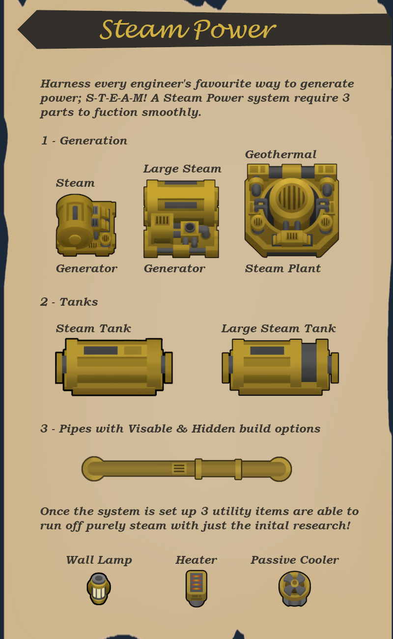 Используйте любимый инженерами способ генерации энергии: П-А-Р! Для работы системы парового двигателя требуется 3 элемента.