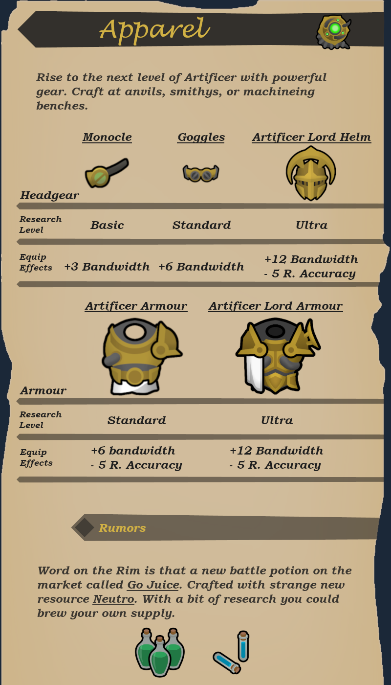 Поднимитесь на новый уровень Артификатора с помощью мощной экипировки. Изготавливайте на наковальнях, в кузницах или на механических верстаках.