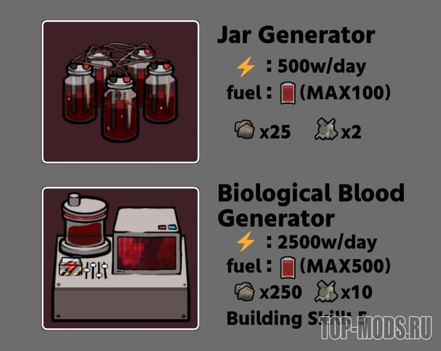 Этот мод добавляет генератор jar мощностью 1x1 мощностью 500 Вт и 2x2 биологический генератор мощностью 2500 Вт.