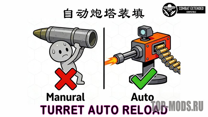 поддерживает RimWorld 1.6. Работает безупречно со стандартными топливными турелями и боевым расширением. Встроенная логика автоматически обнаруживает и игнорирует турели, которые игрок выключает или отключает.