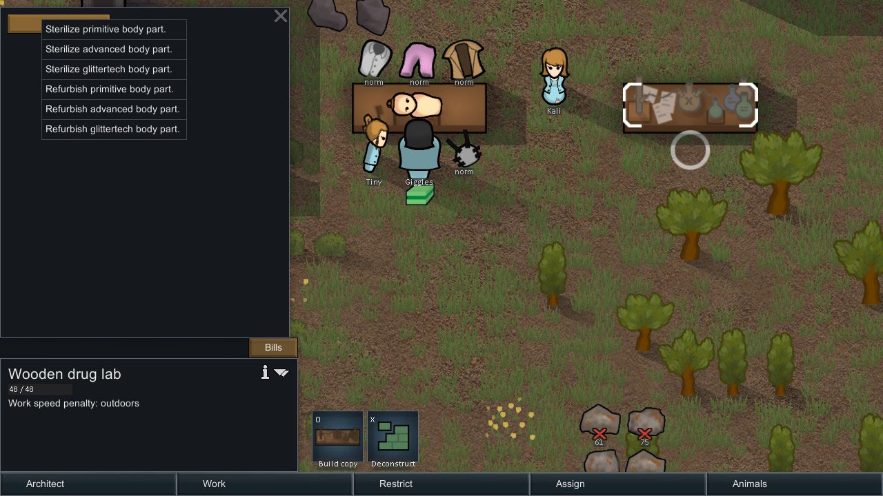 Извлекайте импланты и бионику из трупов и подготавливайте их для повторного использования вашими колонистами.