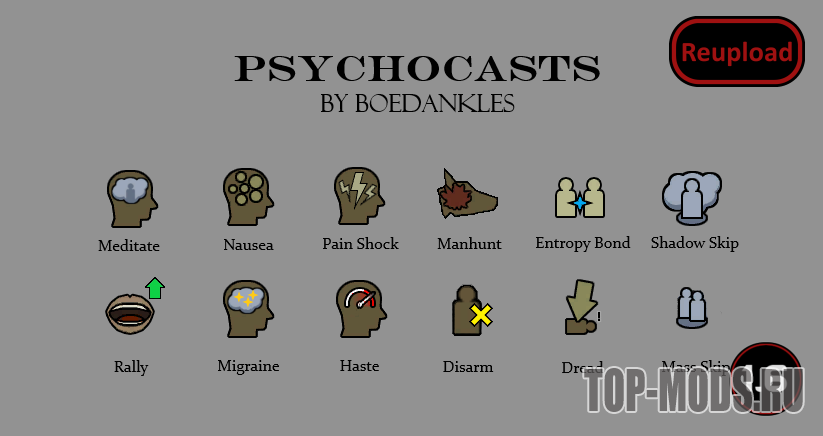 На данный момент мод добавляет 12 пси-способностей. В будущем я, возможно, добавлю еще, но пока что, думаю, этого более чем достаточно в сочетании с оригинальными пси-способностями игры. Я старался включить довольно равномерное распределение баффов, дебаффов и контролирующих способностей и, кажется, неплохо справился с балансом, чтобы они не затмевали существующие способности.