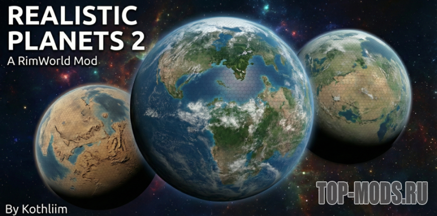 Realistic Planets 2 — это полная переработка процесса генерации миров в RimWorld. Она сохраняет общую форму континентов, но перестраивает рельеф, климат и размещение биомов, чтобы планеты казались правдоподобными, разнообразными и интересными для игры.