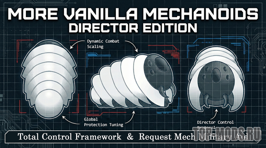 Этот мод добавляет 9 боевых и 1 поддерживающего механоида в ванильном стиле. Все графические ресурсы взяты из ванильной игры.