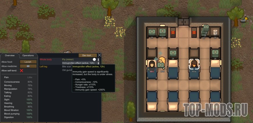 Этот мод сейчас добавляет два новых лекарства: Иммупрофен и Парацетамол.