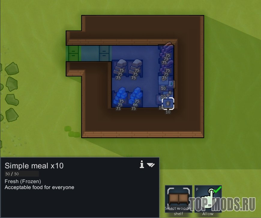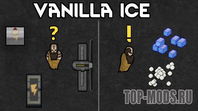 Vanilla Ice добавляет ледяные блоки и снежные комы в Rimworld для низкотехнологичного кулера. Их можно собирать в определённых зонах и собирать, а потом они плавятся, охлаждая комнаты, как холодильник. Теперь ваши племена и средневековые могут строить морозильники без электричества!