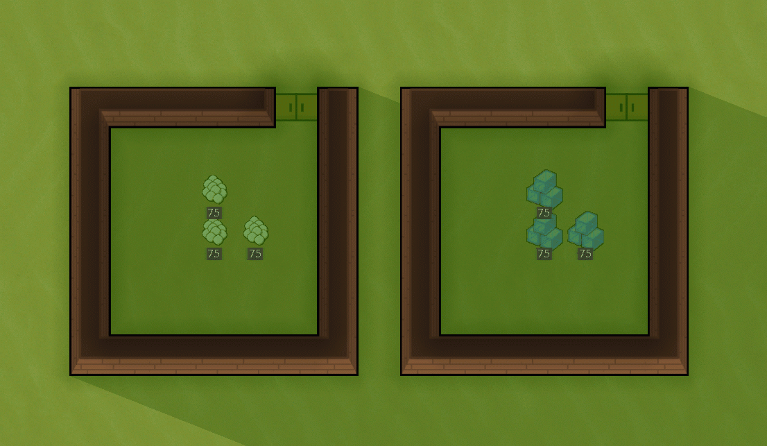 Ледяные блоки собираются с ледяной местности, а в Odyssey можно добывать их из тонкого льда. ⚪ Снежки можно собирать из тонкого или более толстого снега. Снежки примерно вдвое сильнее, чем ледяные блоки. Пользовательские зоны для сбора льда и снега используются для указания колонистам, откуда добывать лёд, а навык добычи — для получения добычи. Зоны могут иметь ограничения на всю карту.