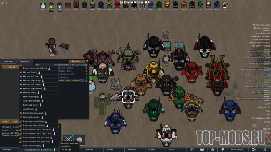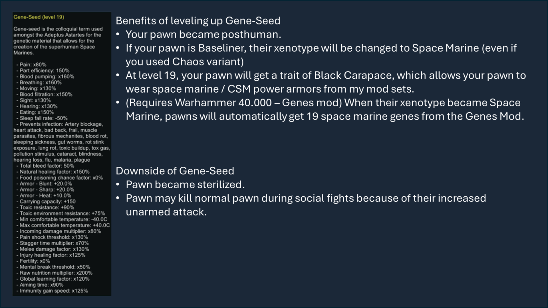 Генное семя также дает дополнительные соответствующие характеристики, если включена функция Combat Extended или Save Our Ship 2.