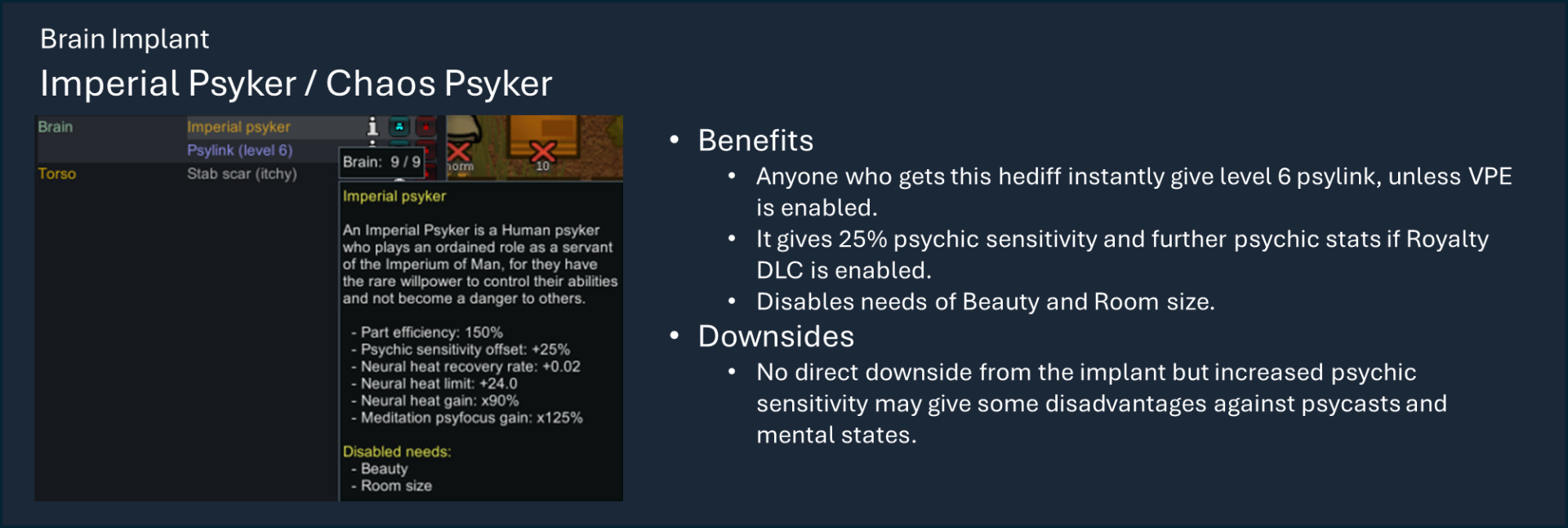 Кроме того, если вы хотите насладиться контентом, ориентированным на DLC, Royalty Libraries предоставит вам королевский титул, разрешения и индивидуальную церемонию награждения, Psycast Libraries предоставит вам vanilla или VPE psycasts, Ideology Libraries предоставит вам мемы и заповеди.