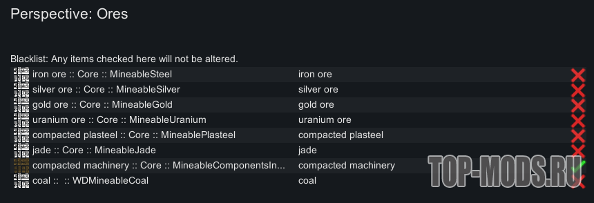 Это крошечный графический мод, который делает цветовой шейдер руды динамичным. Он будет сочетаться по цвету с любыми окружающими скалами, чтобы создать иллюзию, что он является частью скалы, сливаясь с ней полностью.