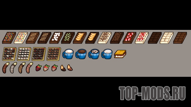 Этот мод использует альтернативные текстуры шоколада без каких-либо новых рецептов! Исправляет шоколад для использования класса разнообразной графики из Food Texture Variety Core.