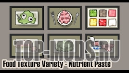 без всяких новых рецептов! Исправляет еду в виде питательной пасты, чтобы она использовала класс графики разнообразия из Food Textura Variety Core.