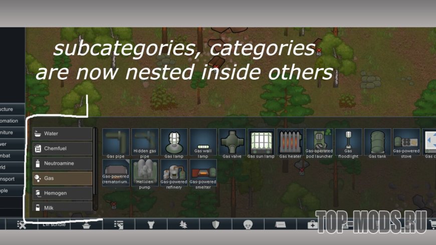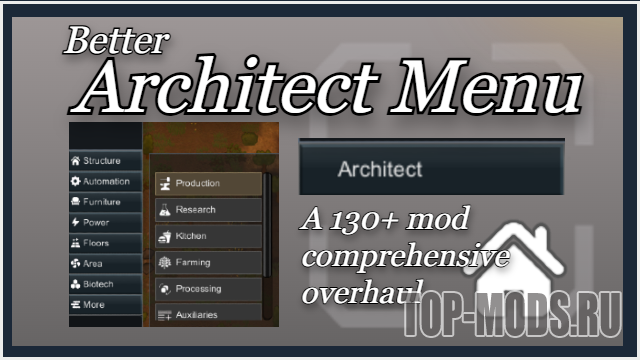 Этот мод - долгосрочный проект сообщества, направленный на создание полноценного меню архитектора, поддерживающего большие списки модов. Это означает наличие подкатегорий, сортировки, всевозможные способы справиться с новым раздутым меню.