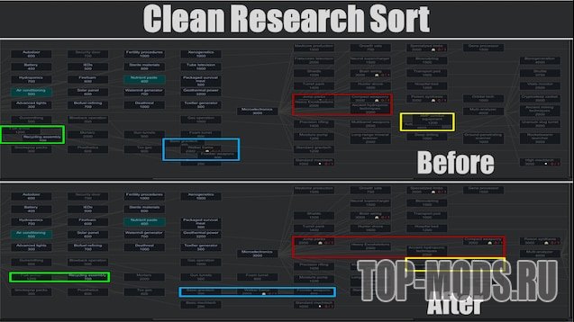 Простой, легкий мод для автоматической сортировки ваших исследовательских проектов. Он исправляет перекрывающиеся макеты, чтобы вы могли легко видеть, что к чему. Работает со всеми исследованиями, даже из других модов, сохраняя при этом ванильную эстетику игры.