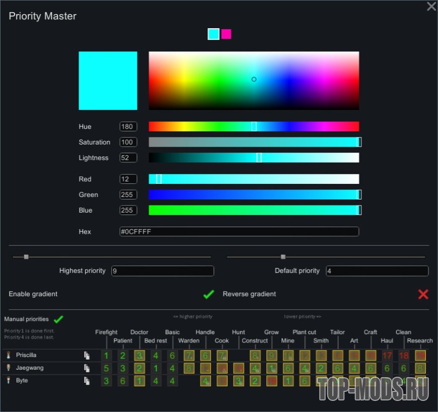 -> Поддерживает изменение цвета для каждого приоритета индивидуально