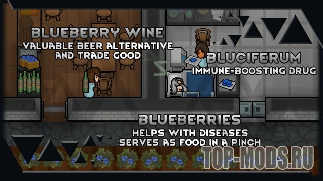 Кусты голубики медленно растут, чувствительны к плодородию и имеют период нарастания. Они дают чернику, которую можно употреблять внутрь, для лечения от болезни. Их также можно превратить в пюре, которое можно ферментировать в ценное черничное вино или переработать в Bluciferum, лекарство, подобное пеноксицилину, которое принимают после заражения (а не до, как пеноксициклин), чтобы помочь в выздоровлении.