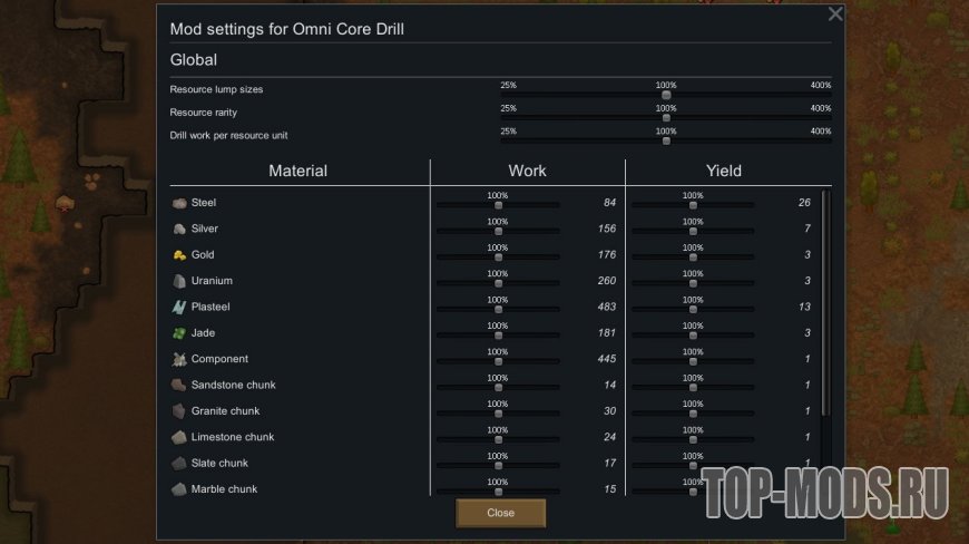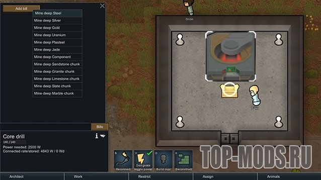 Мод Rimworld, предлагающий глубокое бурение , которое поддерживает любой добываемый материал.